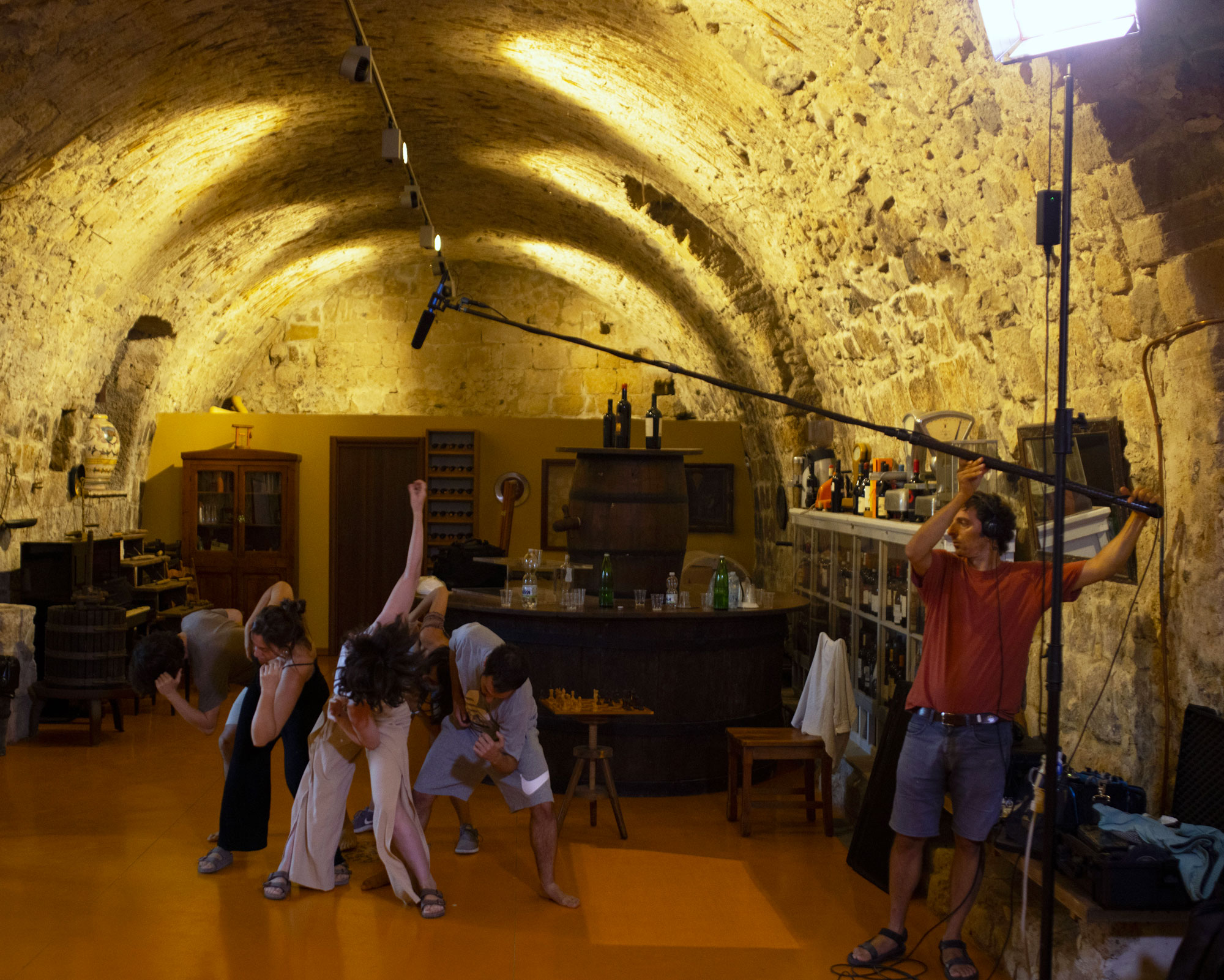 Osservo in silenzio il lavoro di questi giovani attori e come abbiamo trasformato l'intero senso della scena del film che vanno a rappresentare in una sorta di danza rituale.